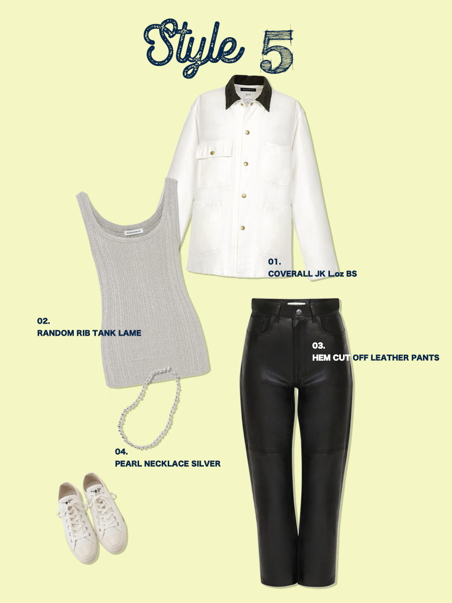 辛口すぎないしっとりとしたラムレザーは、甘さを落ち着かせたり、カジュアルなコーデを引き締めたり、あらゆるバランサーとして活躍。COVERALL JK L.oz BS